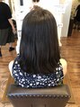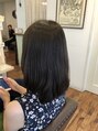 【お客様スタイル】丸みのあるミディスタイルです。前上がりに切ったスタイルですので顔周りは軽やかでスッキリけど後ろは長さがある柔らかいラインのスタイルです表面のみ少しレイヤーを入れてカットし根元のクセの部分をしっかりストレートに伸ばしています