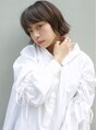 やや短めの切りっぱなしのボブ スタイルを、質感を変えて雰囲気も変えてみるのも秋冬はオススメです◎目元ギリギリの長さの前髪はゆるく巻いて大人っぽさも。カラーはセピアベージュです。