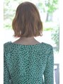 髪の量を程よく残した切りっぱなしボブに、ウェーブ巻きで中間から動きが出るようにスタイリングしています。コテ巻きが苦手な方はパーマがお勧めです。カラーはアッシュ味を抑えたハニーベージュでナチュラルな雰囲気にしています。