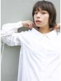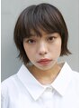 やや短めの切りっぱなしのボブ スタイルを、質感を変えて雰囲気も変えてみるのも秋冬はオススメです◎目元ギリギリの長さの前髪はゆるく巻いて大人っぽさも。カラーはセピアベージュです。