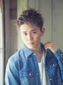 サイド~襟足までを2ブロックに刈り上げて、トップを前下がりにしたスタイル。耳周りと襟足をスッキリ刈り上げているので、何もしていなくてもかっこよく決まります!ハイトーングレージュカラーで外国人風に。