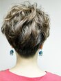 襟足は刈り上げ、トップはゆるめのニュアンスパーマショートスタイル。