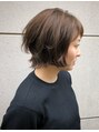 顔周りレイヤー斜めバング前下がりショートニュアンスパーマ