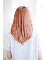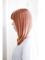 ハイトーンのピンク系カラーにレイヤーの入った内巻きカールスタイルです。扱いやすく人気のスタイルです。