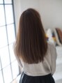 ツヤ感のあるさらさらストレート。ベースは緩やかな前上がりにカット。ノンレイヤーでも毛先がまとまりやすくなるようにカットしました。カラーは毛が重なっても透明感がでるようにベージュに☆明るめカラーならアッシュもおすすめ☆