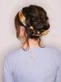 スカーフを使ったヘアアレンジです。後れ毛をたっぷりと出せばこなれた感じに◎