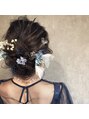 大人なローシニヨンにドレスに合わせてblue系のドライフラワーでお花畑のような華やかさに☆