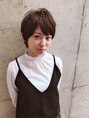丸みのあるショートレイヤーがベース。おでこをチラリとのぞかせてガーリーなショートに☆カラーは今大人気のイルミナカラーを使っています。