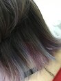 インナーカラーにユニコーンカラーのブルーからピンクへ横ラインのグラデーション。
