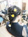 編みおろしフラワーアレンジ二次会、結婚式、ウエディングにもオススメアレンジ。早朝より、袴、浴衣、振袖、七五三、着付けも承ります【早朝/ヘアセット/ヘアアレンジ/ヘアメイク/立川/国分寺/七五三/成人式/卒業式/浴衣/立川/国立/髪質改善トリートメント】