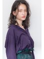 顔周りとトップにレイヤーを入れたミディアムスタイル。カラーは中間から毛先にかけて、ポイントで細くハイライトを入れたシアーベージュ。細かくハイライトを入れるとコントラストが出て、より外国人風なカラーになります。