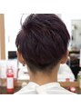 濃ゆ目のダブルカラー。ワックスを多く使うことが多いので、シャンプーで色落ちしやすです。なのでダブルカラーの時は、ブリーチをして、トナーでシルバーの色にベースを作って、希望色の濃ゆいカラーをのせて退色してもキレイな色になるようにします。