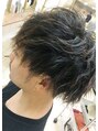 全体をツーブロックにして、トップは緩めのツイストパーマで動きをつくりました。ボリュームを出すスタイルなので、髪の量が少ない方や、直毛過ぎて動きがほしい方にオススメです。カジュアルなスタイルになるので、学生さん・ラフな職場の方にオススメです。