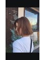 ナチュラルな雰囲気の外ハネボブ☆肩上でぱつんとカットし、軽さを出しました。ブルージュ グレージュ 切りっぱなしボブ ジェンダーレス 大人かわいい ボブ 結婚式 前下がり 斜めバング アシンメトリー 伸ばしかけ 大人ボブ センターパート