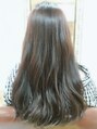 少し重めにカットしたロングヘア。パーマは大き目に2カールし、巻きすぎないように。カラーはパープルラベンダーで艶感アップ。