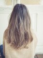 カットは鎖骨ぐらいの長さでカットします。顔まわり、サイドは重く、暗くならないように、レイヤーをいれスッキリとさせ、軽さをプラス!ストレートの髪の方はコテで大きめ、ゆるめにカールをさせ、毛先を外ハネに巻きます。