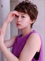 似合わせカットでナチュラルなベリーショート。ベースは暗めにしてポイントカラーにハイライトをいれることによって立体感がでて他と違うショートに。柔らかな印象のクリーミーベージュで派手すぎないカラー☆