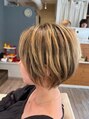人気のボブのスタイルにハイライトを入れて立体感と透明感を出した外ハネスタイル。ハイライトの束の太さ等細かなとこまでこだわってます。ショート~ミディアムスタイル、カラーはお任せ下さい☆