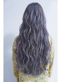 Rブリーチで全体的に極細のハイライトをたっぷりと入れてからアディクシーカラーでスモーキーなアッシュグレーをオン◎