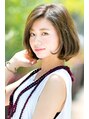 丸みを出すカットで毛量が多くてもふんわり感を保ちながらもスッとまとまりのあるボブスタイルです。毛先には緩めのカールを付け全体のシルエットを補正しています。カラーはバニラベージュでまろやかに。ふんわりとした色合いがおすすめポイント。