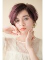 ピンクカラーショートでかわいさと大人な魅力を出すショート☆前髪のウザバングで色気を演出^ ^ピンク系のカラーはお肌も綺麗に見えるのでオススメ☆【ONE茅ヶ崎】