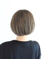 えりあしスッキリのコンパクトなミニボブ。カラーはダブルカラーでアッシュグレーじジュをオン。