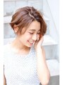 顔まわりや、全体にゆるっとかかるカール感が重さと軽さのバランスが良いフォルムに仕上げてくれる。可愛らしさと透け感のお洒落スタイル。
