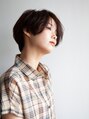 前髪長めのマッシュショート、ラインをやや前下がりにすることで甘くなり過ぎず落ち着いたイメージで幅広いファッションに合わせやすいのも○