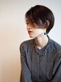 前髪長めのショートボブ。襟足をスッキリさせて後頭部に丸みを作る事で頭を小さく見せます。耳周りもやや短めにカットする事で耳にかけやすさとヌケ感をプラス。