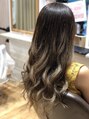 元々ブリーチ毛の髪に根本は暗めのアッシュをのせ中間から毛先にはクリアベージュを乗せてます。透明感のあるグラデーションです。