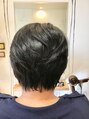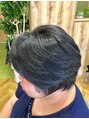 くせ毛で広がりやすい髪質がシャープに見えるように襟足にレイヤーを入れ遊びを!子育てに忙しいママには適したショートスタイル!