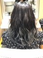 根元から中間は リタッチが目立たないブルーアッシュのダークカラーで毛先から中間にかけて ハイライトバレイヤージュグラデーションでブリーチで色を抜いたのちブルーアッシュカラーをかぶせました!ダメージを気にするけど、色味を楽しみたい方にオススメ!