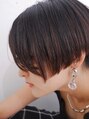 センターパートぎみのお店ショートヘアです。伸ばしかけの前髪にもおすすめのスタイルです!