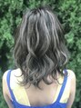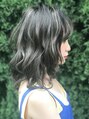 厚めバングにランダムウェーブのミディアム 藤沢 立体感カラー/ホットペッパービューティー
