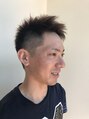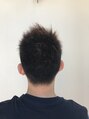耳まわりと襟足はスッキリと刈り上げ、トップは長めに設定することで、動きが出しやすいショートスタイルです。アップバングで彼の爽やかな印象をさらにアップ。