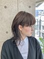 ワイドバング×ミディアムウルフスタイル☆前髪を耳のところまで切りこみ、後ろはしっかりとレイヤーを入れて、オシャレウルフスタイルに♪