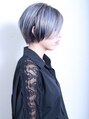 ブリーチ後薄めたバイオレットとアッシュを乗せ、黄味を抑えたハイトーンカラーのショート。