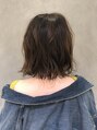 ぱつっとしたボブスタイルをベースに柔らかくウェーブをプラス。動きを出しやすくするためにスパイラルのウェーブをところどころにかけています。カラーはアプリエで、透け感たっぷりのナチュラルグラデーションに。