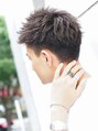 スポーティーなツーブロックショートヘア。アップバングで爽やかさアップ。