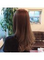 ダメージを配慮したカラーに透け感をプラス!ブリーチの入った毛先のダメージを特に配慮しました。軽く柔らかくみせるように仕上げました!トリートメントは、新質感のトリートメント!サラサラ軽いのにまとまりやすく、ダメージ補修もしながらケア