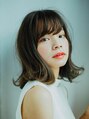 大きめにハネさせた毛先がお人形のような印象のミディアムスタイル。外ハネにしただけだとぺったりしすぎてしまうので、表面にくる毛束を数カ所根元から中間にかけて巻き足すことでふんわりナチュラルに仕上がりますよ☆