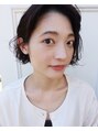 ボブスタイルに中間から毛先にパーマをかけた、カジュアルボブスタイル。お手入れも簡単です。