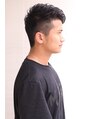 サイドと、バックをハチ近辺まで高めにしっかり刈り込んだワイルドツーブロックスタイルを長めに残した前髪を上げ下ろしてアシンメトリーに仕上げるのがポイント!ジェルでツヤと束間をラフに作る!
