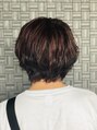 くせ毛をいかしたマッシュショート!甘めのベリーカラーでボーイッシュすぎない女性らしいショートになります。