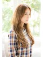 大きめカールと、ほど良いくずし感で、グラマラスすぎず、カジュアルなフェミニンンスタイル♪大きくゆるくくっきりしたカールで外国人風なウエーブを再現しました。