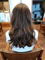 セミロングで重めスタイルにハイライト入りのグレーベージュ、量感を軽くして動きを付けてます