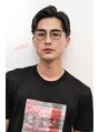 耳周り襟足は甘めに刈り上げて、トップは長さを残しユルめにパーマスタイルです。強くても弱くてもハマる73ビジカジスタイルです。メガネサングラスもバチっとハマります。