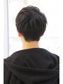 サイドバックは刈り上げてツーブロック。トップに動きがでるようにしたネープレスマッシュスタイル。間引くようにすいているのでスタイルングが苦手な方でもカッコよく決まる好感度アップ無造作ショート!1分スタイリングが実現☆簡単スタイリング。ビジカジ