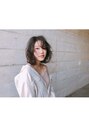 切りっぱなしのボブでも重くならないように少し軽くして動きを出しています前髪も短めにカットして可愛らしさをプラスカラーは明るめのベージュ系です