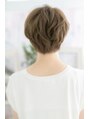 ショートでもボーイッシュになりたくない、女性らしさを残したい、と言う方にオススメのフェミニンアシメショート。厚めバングや斜めバングで目元を印象つけ、ベージュカラーでやわらかな雰囲気に。ヴェールウェーブでニュアンス感ある動きを演出します。